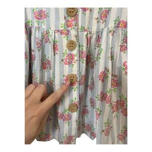 Vintage Blue Floral Dress with Pink Flowers & Wooden Buttons