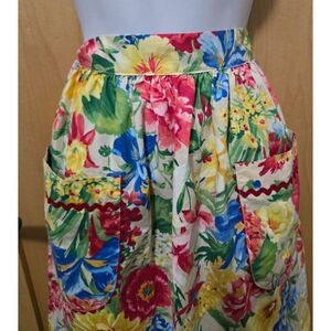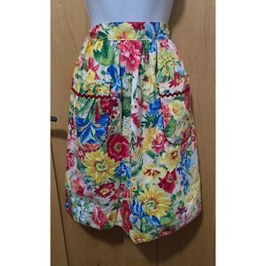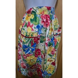 Once upon a time in a realm of blooming gardens, there existed an apron skirt as vibrant as the sunlit fields. Crafted from soft cotton, this vintage piece weaved stories with its floral patterns. Its generous pockets and tie-back design whispered of days spent gathering wildflowers and baking sweet pies.