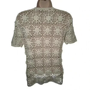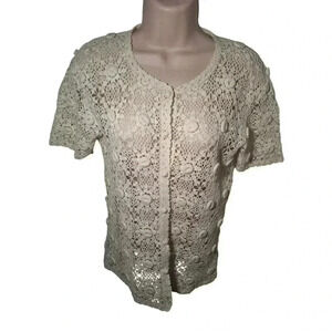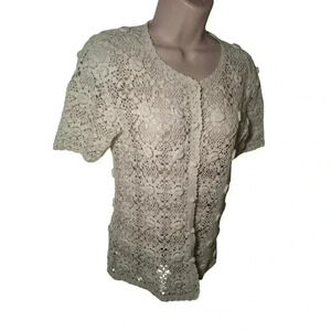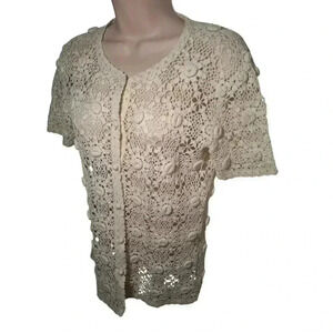 Vintage Floral Crochet Button-Up Top – Cream – Size XS (Measured)