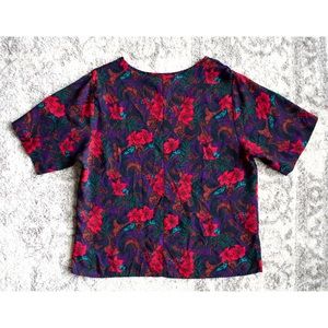 Vintage knit loose-fitted crop top in a rich, vibrant floral pattern