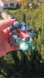 Features seven blue & green enamel flowers with crystal rock centers; bracelet is dimensional; flowers vary in size; wrist 2 inches (adjustable)
