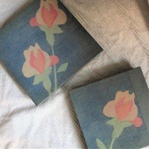Vintage Floral Decoupage Blue Square Nesting Boxes