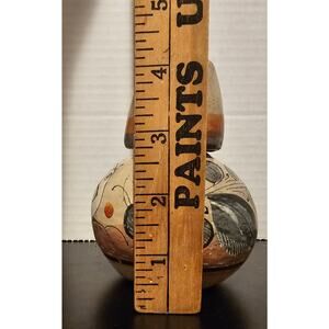 Decorative use only, don't know what kind of glaze was used. Unsigned. Some wear to paint, rim of Carafe has wear and is chipped. Imperfections on base. Weight 0.46 pounds.