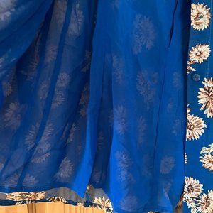 Blue button up floral dress with additional zipper in the back. This is a very nicely made dress. It is fully lined. 1990s? Beautiful and unusual. EUC!