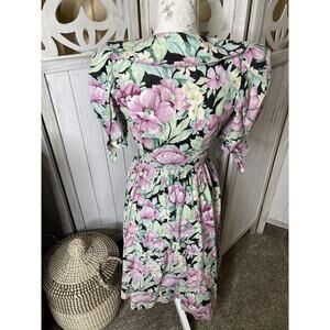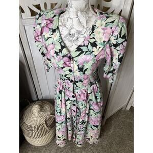 Vintage Floral Dress Midi Dress 80s 90s Flowers Cottagecore Button Down Small