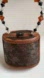Unique vintage handbag with floral embossing. Features a beaded handle with brown and black beads. 5x7. This wooden box bag is adorable! Feel free to ask any questions. ๐