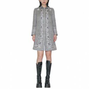 Vintage Floral Embroidered Herringbone Wool Coat 70s Gothic Boho Long Jacket