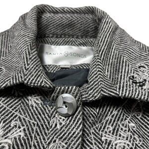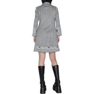 wool blend fabric, embroidered detail, chevron pattern, side slit pockets, fully lined.