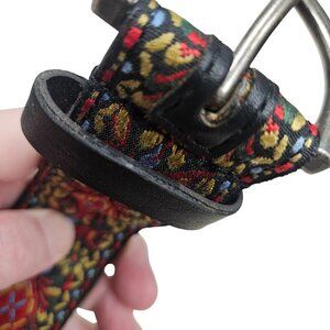 Vintage Floral Embroidered Leather Belt Silver Buckle Boho Tapestry Woven 32