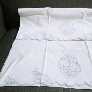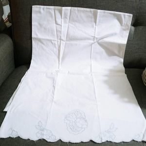 Vintage Floral Embroidered Pillowcases Scalloped Edge Set of 2 Gray & White (lb)