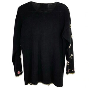 Vintage Floral Embroidered Y2K Pullover Sweater Tunic Womens Size Medium Black