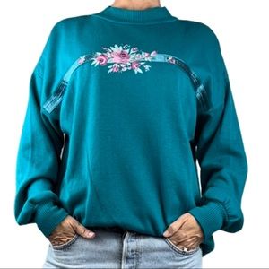 Vintage Floral Embroidered and Sequined Sweatshirt, Grandma core