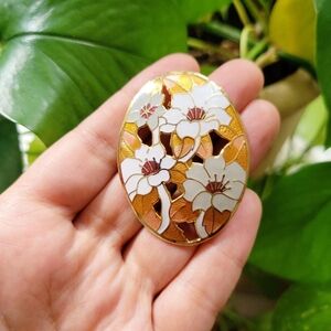 grandmother grandmothers grandmother's gift present holiday stocking stuffer stuffers boutique pink amber like orange white brown yellow tone flower flowers estate oval shape shaped large vintbro CRAS