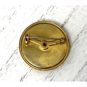 Vintage Floral Enamel Brooch Pin With Gold-Tone Backing & Purple-Orange Daisy De