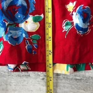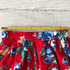 Vintage Floral Fit Flair MIDI Skirt Sz 12 Pockets Red White Blue 90s Spring