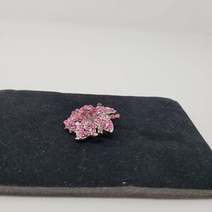Vintage Floral Flower Brooch Pin Pendant Pink Purple Rhinestone Silver Tone