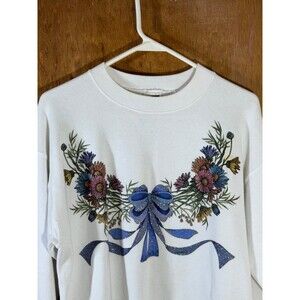 Vintage Floral Flower Sparkle Crewneck Sweater Sweatshirt Women’s Medium M USA