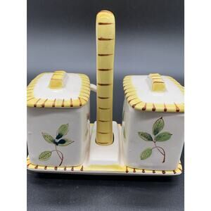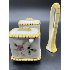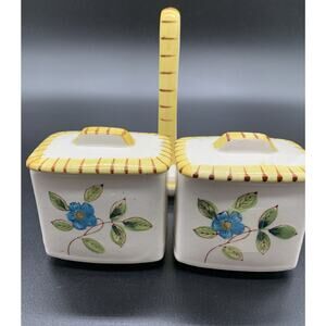 Vintage Floral Flowers Jam Jelly condiment jar Spoons and Handled Tray Yellow