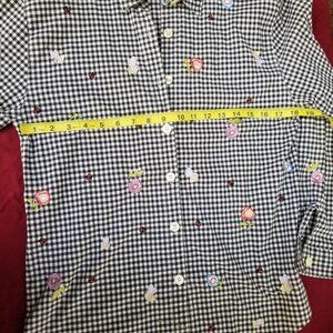 Vintage gingham print button down shirt with embroidered flowers. Size Small. EUC!