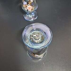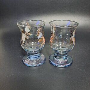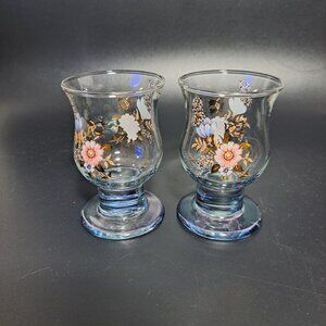 This pair of vintage candle holders showcases intricate floral designs in vibrant colors, adding a touch of elegance to any space.