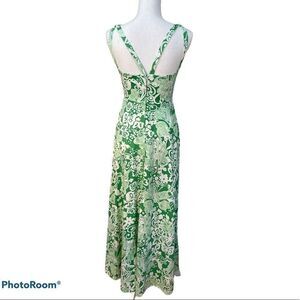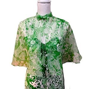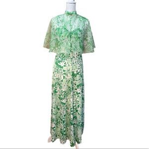 Vintage Floral Green Strappy Maxi Dress with matching cape size XS