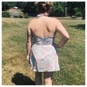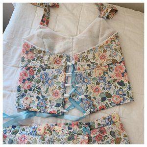 Vintage Floral Halter Corset Back Summer Skirt Set