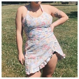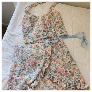 Gorgeous summer set created from vintage Laura Ashely fabric. A wrap skirt with hook and eye closures which can be moved to accommodate a smaller/larger waist. Top has halter neck and adjustable corset back with ribbon tie. Set will best fit Medium-Large. New, and in excellent condition. Please comment with questions!