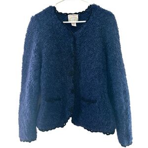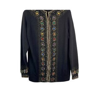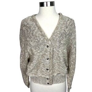 Vintage Floral Hand Embroidered Virgin Wool Cardigan Sweater