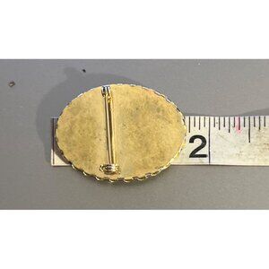 This vintage brooch boasts a delicate hand-painted design featuring a pink rose surrounded by blue flowers. Its elegant and timeless appeal makes it a suitable accessory for various occasions. The craftsmanship reflects a high level of artistry, ensuring that it stands out as a unique piece in any collection.