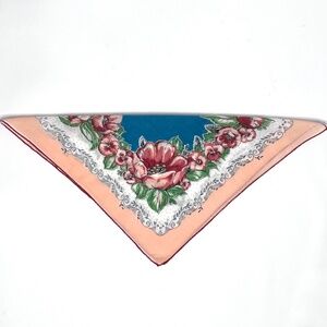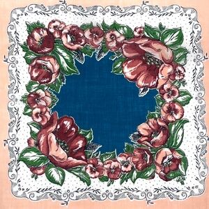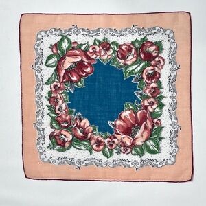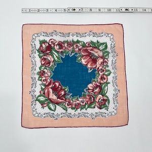 Vintage Floral Handkerchief Hanky Pocket Square Blue Peach Orange