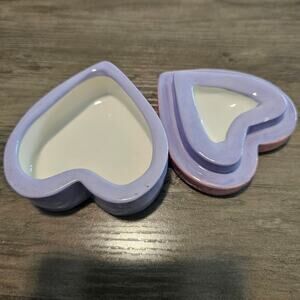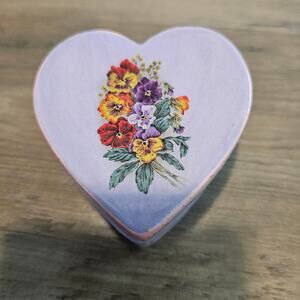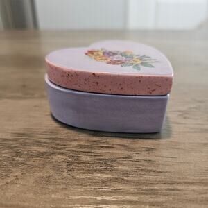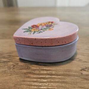 Vintage Floral Heart Trinket Jewelry Box Pastel Purple Ceramic Keepsake Cottage
