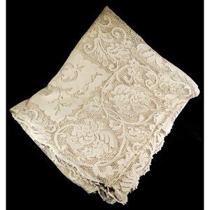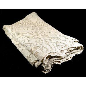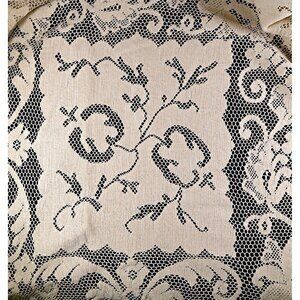 Vintage Floral Lace Tablecloth 74x60" Beige Oblong Mid-Century Linens