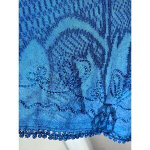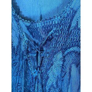 Vintage Floral Lace Top M Blue Coastal Boho Western Hippie Classic 80s Indie