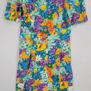Vintage Floral Made in USA Ultra Soft Rayon Button Midi Dress Large