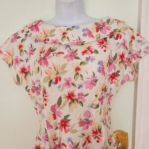 Vintage Floral Maggy London Wiggle Dress 8 Linen Blend Cosplay 50s Costume