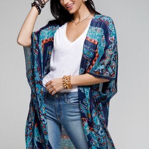 Vintage Floral Mandela and Paisley Print Tassel Hem Open Kimono Duster