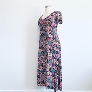 Vintage Floral Maxi Dress S Grunge Retro 90s Scoop Short Sleeve Tie