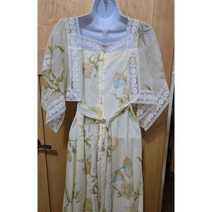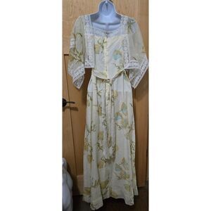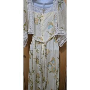 Vintage Floral Maxi Dress With Lace Flutter Sleeves & Belt boho hippie fairycore