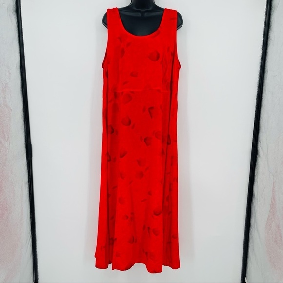 Vintage Floral Maxi Shift Dress Womens Plus Size 20 Red Tulip Rayon Sleeveless