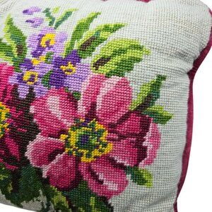 Vintage Floral Needlepoint Throw Pillow With Velvet Backing 11"x11"
