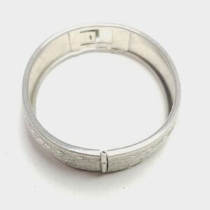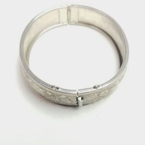 Vintage Floral Pattern Silve Tone HInged Bangle Bracelet, Stacking, Estate