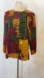 Features a gorgeous floral pattern throughout, a high neckline style, 5 button front, slits on either side and shoulder pads. Good preowned condition, no flaws rips or stains.