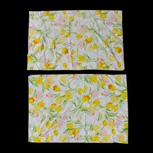 Vintage Floral Pillowcases Yellow Pink Tulip Flowers Utica USA Set Of 2 Retro