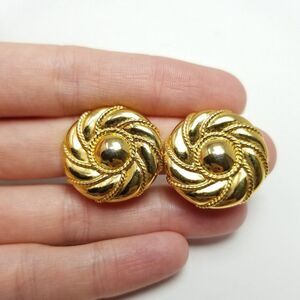 Vintage Floral Pinwheel Shape Clip On Earrings, Gold Tone Retro Design, Estate