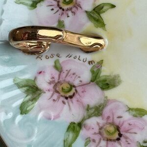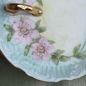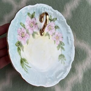 Vintage Floral Porcelain Nappy Plate with Gold Accent