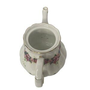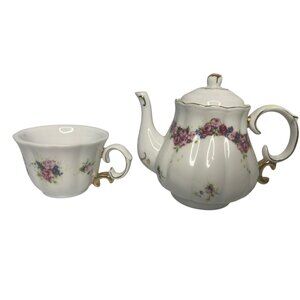 Vintage Floral Porcelain Stacking Teapot and Teacup Set with Gold Accents
