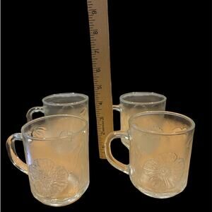 Vintage Floral Pressed Glass Cups Mugs Set of 4 - Indonesia, Retro Collectible