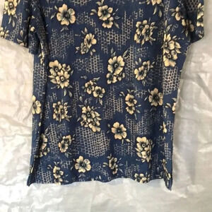 Vintage Floral Print Top Short Sleeve Blue Beige Patterned Shirt