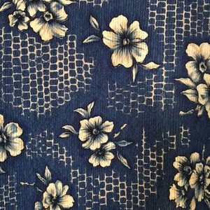 Elegant floral print top, featuring a navy blue background beautifully contrasted with a beige floral pattern and subtle geometric details. This short-sleeve top offers a comfortable and stylish fit, perfect for creating a sophisticated yet relaxed look. Pair it with your favorite jeans for a casual brunch, or dress it up with a skirt for an afternoon tea party.