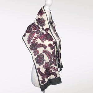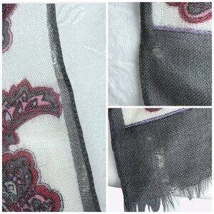 Vintage Floral Print Wool Blend Rectangle Scarf Gray Red White